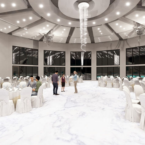 The Aether Ballroom is a sophisticated event space defined by its 30-foot-tall ceilings, expansive glass windows, and elegant chandeliers that shimmer over a spacious dance floor. A grand staircase adds an extra touch of glamour, making it the perfect setting for unforgettable events and creating an ambiance that combines modern luxury with timeless elegance.